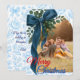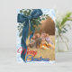 Elegant marinblå rosett & frisk grönska Foto Julkort