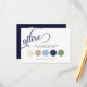 "Den eleganta marinblå tulpanbröllopsinbjudan 'Elegant Navy Blue Tulip Wedding Attire Enclosure Card'" är ett smakfullt tillägg till din brölloppskorrespondens. Framsidan på kortet visar ordet "Attire" mot en anpassningsbar palett med fem färger, så att du kan matcha det perfekt med ditt bröllopstema. På baksidan ger en ljusblå tulpan på en marinblå bakgrund en touch av elegans och kontinuitet med det övergripande blomsterarrangemanget. Detta kort guidar dina gäster graciöst till önskad klänning, vilket säkerställer att alla känner sig en del av din speciella dags estetik.