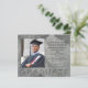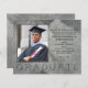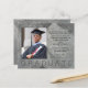 Ett budgetvänligt, elegant examensmeddelande tryckt på 4,5x5,6-tums lättviktigt papper istället för kartong med en grå marmorerad stenbakgrund och foto på din högskole- eller gymnasieexaminerad. Perfekt för konservativa budgetar och/eller för handleverans. HJÄLP: För hjälp med designändring eller anpassning eller överföring av designen till en annan produkt, kontakta designern INNAN du beställer via Zazzle Chat MESSAGE-fliken eller e-post makeitaboutyoustore@gmail.com.