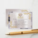 Elegant Marble, Vit, Guldram, Guld Hjärtförvaringskort har en vit satinmitta på en svart-vit marmorerad bakgrund, infattad med förgyllda rosor och blad, utsmyckad med ett silverhjärta med slingrande former. detaljer för mer information på framsidan och QR-kod på baksidan. Designad för att samordna med "Elegant Marble, Gold Leaves Frame & Scroll Heart" bröllopssamling. För att ändra detaljer, klicka på "Personalisera". För att flytta texten eller ändra textstorlek, teckensnitt eller färg klickar du på "Klicka för att anpassa ytterligare"