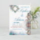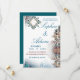 Ge din speciella dag tidlös elegans med denna marockanskinspirerade bröllopsinbjudan, med lyxiga tealtoner, mjuka guldaccents och intrikata arabeskmönster.