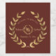 "Elegant Marsala Gold Leaf Wandan Reception Wine Label." Elegant men enkelt lagerblad utgör en krans i mitten av denna märkning med en guldbladtypografi "och" som belyser dina namn och bröllopsdatum. Rich burgundy, vin, marsala röd bakgrundsfärg kan ändras. Designad av internationellt licensierad konstnär, Audrey Jeanne Roberts, upphovsrätt.