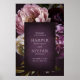 Denna design är en del av en mörk och stämningsfull maximalistisk blommig bröllopsinbjudan serie, med frodiga, överdimensionerade botaniska blommor i en djup juvelton purpur färgpalett. Den lyxiga finkonst blommande aspekten är parade med elegant typografi för en tidlös och romantisk estetik. Perfekt för höst-, vinter- eller kvällsbröllop, denna design passar par som planerar en sofistikerad fest med en touch av drama.