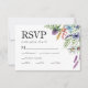 Elegant jokerblommor bröllop OSA med de tre måltidsalternativen. Exemplet omfattar kött, fisk och veganmenyer, men det kan ändras till vilken annan text som helst. Designad med siduppbackning och en blandning av skript- och serif-teckensnitt. Utformningen omfattar söt blommor och grönt löv. Anpassa den med din egen text. Perfekt för en blommigt eller vår eller sommar bröllop.
