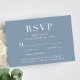 Klassiskt och traditionellt dammigt blått bröllop OSA-kort med "OSA" i vit elegant och alternativ för personlig-menyn.