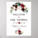 Elegant Merlot Navy Blue Blommigt Bröllop Sign Poster