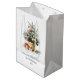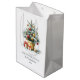 Our wonderful little Christmas tree in a gold pot is elegant for the holiday season, but somehow at the same time is cute as can be. We love the shiny gold and red ornaments, dusting with snow, and red-ribboned bows on presents ready to be given. All done in watercolor of vintage origin, but you wouldn’t know it because it looks so modern and trendy. We hope you love it too and will enjoy using this “Merry Christmas” medium sized gift bag for your beloved relatives and friends this wintertime. The design also looks good on the small gift bag, if you prefer that size.