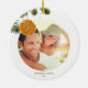 Modern enkel Elegant Guld Citrus Jul Fresh Lemon orange Photo träd ornament. Fin grönt grenar med torkad orange av citrondeeller hängande i en julkypress Gren. Du kan anpassa det här nya kortet med egen text och egen bild.