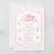 Elegant Merry and Bright Corporate jul Company Julfest Investigations har enkel vit inslag på rosa och vit strimlad bakgrund med texten "Merry & Bright" i elegantens röda kalligrafskript typografi. Snyggt, trendig och chic för företagets Julfest. Skapat av Evco Studio www.zazzle.com/store/evcostudio
