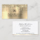 Det metalliska affärskortet i guld med det mousserande guld glitter drop gräns och initialer som anpassningsbar monogramlogotyp. Du kan ändra all text på kortets framsida och baksida med hjälp av anpassningsmallen. Byt bara ut exemplet ord mot din egen affärsinformation. En del av vår Monogram Logotyp Affärskort Collection for chef dam.