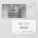Elegant silver metalliskt affärskort med silver glitter drop gräns och initialer som anpassningsbar monogramlogotyp. Du kan ändra all text på kortets framsida och baksida med hjälp av anpassningsmallen genom att helt enkelt ersätta ord med din egen affärsinformation. En del av vår Monogram Logotyp Affärskort Collection for chef dam.