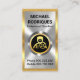 Ett faux silver-lager med ett cirkelstycke i mitten är inkapslat med en guld rektangulär ram. Längst upp på kortet finns ditt prestigefyllda namn och din jobbtitel med kontaktinformationen på basen. En guldchauffeurs logotyp som du kan använda placeras inuti silverplåten. I ett vitt omslag är guldchaufförens logotyp överst. Detta följs av företagsnamnet, kontaktinformationen och ett alternativ för slogan som du kan ändra. Ett fantastiskt kort för chaufförer och taxiförare att använda. #chauffeur #privatiedriver #driver #taxi #taxiservice #taxiride #taxidriver #limo #designateddriver #rideshare #zazzlemade