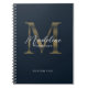 Elegant metallisk marinblå guldmonogram anteckningsbok