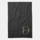 Elegant Midnight Black Mossy Guld-skript Monogram Kökshandduk