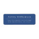 Chic, modern och enkel returadressetikett för bröllop med namn i skripttypografi för vit elegant i snyggt på en klassisk blå bakgrund. Lägg bara till namn och adress till dessa minimala returetiketter för söt. Enbart designad för dig av Lycklig Dolphin Studio. Kontakta oss på happydolphinstudio@outlook.com om du behöver hjälp eller matchande produkter. Vi är lycklig för att hjälpa dig att göra bröllop till den vackraste dagen!