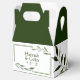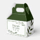 Inslag: vattenfärgsfärgade löv, grönaktiga, lövfällda mot en ren dubbla ram. Färg: vit, grönt, oliv, moss, jägare, grönt, grönt av skog, mörk grönt, ptalo-grönt, grönt av den brittiska tävlan. Teman: moderna, klassiska, inspirerade vintagar, elegant, botaniska, lövträd, trädgård, vinerier, utomhusbruk, bröllop, vår, sommar, enkla, rena, vita. Samling: Elegant Minimal Löv Ram Grönt Olive Hunter White Product Type: Favor Box - GableBox - GableBox