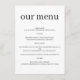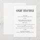 Ge din bröllopsdag en touch av sofistikering med denna eleganta minimala moderna chic bröllopsdesign. Perfekt för menyer, skyltar eller brevpapper, ger denna rena och stilrena layout en polerad, modern touch. Anpassa med dina menyalternativ, namn eller datum för en förfinad och tidlös presentation.