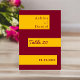 Detta eleganta rödvin och guld bröllopsbordnummer är perfekt för ett modernt bröllop. den enkla designen har elegant rödvinskalligrafi på guldremsor på en rödvinbakgrund.