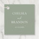 Add a thoughtful finishing touch to your rustic wedding favors with these minimal square favor tags. A simple sage green background showcases delicate stylish white script calligraphy featuring "and" in the middle, with the bride and groom names written in capital letters cormorant font and wedding date below in clean typography. The same elegant design appears on the back, creating a polished look from every angle.