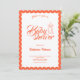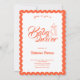 Celebrate the mom-to-be with timeless charm using this elegant scalloped Baby Shower Invitation. Featuring a soft neutral background framed by a bold coral scalloped border, this design blends classic femininity with a modern, playful touch. The graceful script typography paired with a delicate bow illustration adds a romantic and refined feel, perfect for a stylish celebration.