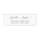 Moderna, eleganta returadressetiketter, perfekta för alla evenemang som bröllop, födelsedagar, RSVP:er etc. Med en elegant, svart kalligrafiskrift för ditt namn och modern sans serif för adressdetaljer, dessa kan enkelt anpassas med dina uppgifter genom att använda alternativet Anpassa. Observera att för att behålla svängarna i namnen måste du ange dina uppgifter mellan de två fyrkantiga rutorna.