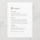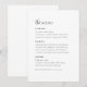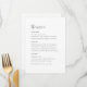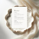 Med det här minimala, detaljerade menykortet kan du presentera en lite sofistikerad lösning för din bröllopsmottagning. Det här menykortet är utformat med en perfekt som blandar sig i tidslängd och modern design och tillför en förfinad elegans till din matupplevelse. Den minimalistiska utformningen gör det möjligt att fokusera på maten, samtidigt som den erbjuder ett vackert och sammanhängande stil till er totala bröllop-deka!