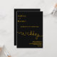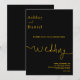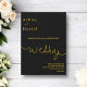 Denna eleganta svarta och gyllene bröllopsinbjudan är perfekt för ett modernt bröllop. den enkla designen har elegant gyllene kalligrafi på en svart bakgrund.