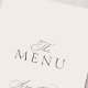 Denna eleganta vertikala menykort för bröllop har raffinerad skrivstilstypografi i kombination med klassisk serif-text för en tidlös och sofistikerad look. Den rena elfenbenslayouten och det balanserade avståndet skapar en lyxig estetisk känsla som är perfekt för svarta band-bröllop, formella mottagningar och romantiska firanden. Det vertikala formatet är idealiskt för att visa aptitretare, huvudrätter och desserter samtidigt som det kompletterar en sammanhängande svit bröllopspapper som inbjudningar, platskort och bordskort.