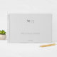 Hämta de hjärtliga budskapen från dina kära med vår elegant och minimalistgästen bröllop bok. Designat för att sömlöst matcha Elegant minimalistsviten bröllop, har den här gästen bok ett nästan vitt grått-täcke med parets initialer på framträdande plats överst och deras namn är elegant tryckt under. På insidan finns det gott om utrymme för gästerna att lämna sitt välmående önskemål och sina minnen. Bakomslaget bibehåller den bedövande tealbakgrunden med parets initialer på ett smakfullt sätt placerat i mitten, vilket säkerställer en sammanhängande och snyggt presentation. Den här gästen bok är perfektens viktigaste uppgift att ta hand om de speciella stunderna från bröllopsdagen.