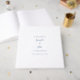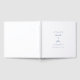Elegant, trendig dammig blå och vit bröllopsskrivbok för minnen har en chic design i snygg blå färg på genomskinlig bakgrund. Två ömtåliga dekorativa detaljer som var och en innehåller ett hjärta omger namnet på bruden och brudgummen och symboliserar att två hjärtan blir ett. Traditionell formulering ger tidlös men modern förfining. Personifiera bröllopsdesignen med dina detaljer i vacker dammig blå bokstavsstil och typsnitt. Paret får det gifta namnet och bröllopsdatumet på bokens rygg. Bokens baksida har en enkel minimalistisk design och är enfärgad.