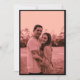 Dubbelsidigt dammgrått och svart elegant minimalistiskt Spara datum-kort visar fotot du väljer i en rosa sepia-nyans med en svart ram på ena sidan och ditt personliga eleganta minimalistiska Spara datum-meddelande på den andra. Finns på alla papper, i alla stilar och färger