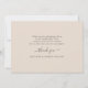 Utformningen av det här tackkortet från Bröllop är häpnadsväckande vacker. Textens känsliga och smärtsamma kalligrafi förmedlar en känsla av elegans och sofistikering, medan den mjuka pastelliserade färgen av lätt dammig blå och rosa skapar en drömmande och romantisk atmosfär. Den invecklade utformningen av blommigten på kortet är utsökt och tillför en del av naturens skönhet till den övergripande utformningen. Kombinationen av kalligrafi och blommigt skapar en harmonisk och vänlig sammansättning, och skapar detta kort som ett idealiskt val för att uttrycka tacksamhet och uppskattning efter ett bröllop. Matchande objekt är tillgängliga.