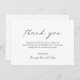 Enkel svart-vit begravning tackkort med "tack" i kalligrafi. Nedan visas ditt personliga meddelande och namnet på den avlidne i script. En minimalistisk design med chic typografi för en elegant touch.