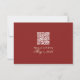 Bjud in gästerna att svara med stil med detta gamla pengar djärva röda bröllop RSVP-kort, designat med tidlös kalligrafi och en rik, formell röd palett. Med en ren layout och en anpassad QR-kod kombinerar detta kort klassisk bröllopstradition med modern bekvämlighet - vilket gör det enkelt för gästerna att svara online. En perfekt matchning för din formella svit, detta svars kort håller din bröllopsbrevpapper elegant, effektivt och vackert sammanhängande.