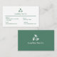 The front layout provides organized space for essential contact details such as address, phone number, email, and website—making it easy for customers to reach you. The back features a stylish leaf-inspired logo symbolizing purity, freshness, and nature, all set against a calming green background that evokes the essence of tea culture and relaxation.