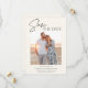 A modern ivory save the date photo announcement featuring a black calligraphy script font and simple minimalist design. This unique save the date card is a trendy way to announce your wedding. THE SAMPLE PHOTO IS NOT INCLUDED. REPLACE WITH YOUR OWN PHOTO BEFORE ORDERING.
