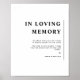 Personalisera detta eleganta minimalistiska bröllopsskylt med "In Loving Memory". Stylish, ren och enkel, modern elegant design. 8" x 10" är bara ett exempel på design som finns tillgänglig i olika storlekar. Möjlighet att välja "Redigera med designverktyg" och göra ändringar i textstorlek, stil och position (alla utom "och"). Möjlighet att ändra den vita "bakgrundsfärgen" till andra färger med hjälp av designverktyget. Del av vår "Minimal Elegant Wedding and Events Signage" -samling med en mängd olika koordinerade produkter tillgängliga.