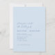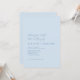 Denna bröllopsinbjudan är helt i en mjuk, sval blå färg — flödande script för inledningstexten och mottagningsraden, fet gles bokstavsstil för parets namn och ren typografi för alla detaljer däremellan. Det är lugnt, romantiskt och elegant. Ett vackert val för ett par som älskar en mjuk, något-blått estetik som genomsyrar hela deras brevpapper.