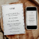 Eleganta minimalistiska bröllopsinbjudningar som denna tidlösa svart-vita design är perfekta för moderna par som söker en ren, klassisk estetik för sin stora dag. Med en formell serif-monogram högst upp och en sofistikerad typografisk layout genomgående, förenar denna inbjudan traditionell formalitet med samtida enkelhet. Den monokroma färgpaletten och den centrerade justeringen skapar ett förfinat utseende, idealiskt för exklusiva bröllop och formella evenemang, och tillhandahåller alla viktiga detaljer i ett snyggt, stilrent format. Oavsett om du är värd för ett svartbandbröllop eller en intim stadsceremoni, passar denna moderna klassiska inbjudan en mängd olika eleganta teman. Perfekt för par som uppskattar minimalistisk design med maximal effekt, sätter denna inbjudan