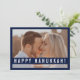 Elegant Minimalist Script Happy Hanukkah Photo Holiday Card.