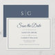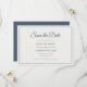 Meddela din bröllopsdag med tidlös elegans. Detta landskapsmotiv för "Spara datum"-kortet har en krämfärgad framsida infattad i dammig marinblå. Baksidan visar parets initialer, webbbinformation och en QR-kod med dammig marinblå bakgrund för en djärv, sammanhängande finish. ”Spara datum” är markerat med graciös kalligrafi, med parets namn i fet kursiv och evenemangsinformation i en klassisk serif-teckensnitt. Ett raffinerat et-tecken flankerat av linjer förenar namnen i mitten och skapar en balanserad, romantisk layout. Helt anpassningsbar för att matcha din bröllopsdag och -plats. Perfekt för formella, minimalistiska eller naturinspirerade bröllop. Koordinerar vackert med matchande inbjudningar, RSVP
