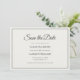Tillkännage din bröllopsdag med tidlös elegans. Detta landskapsmotiv för "Spara datum"-kortet har en krämfärgad framsida infattad i mjuk svart. Baksidan visar parets initialer, webbplatsinformation och en QR-kod med mjuk svart bakgrund för en djärv, sammanhängande finish. "Spara datum" är markerat med graciös kalligrafi, med parets namn i fet kursiv och evenemangsinformation i en klassisk serif-teckensnitt. Ett raffinerat et-tecken flankerat av linjer förenar namnen i mitten och skapar en balanserad, romantisk layout. Helt anpassningsbar för att matcha din bröllopsdag och plats. Perfekt för formella, minimalistiska eller naturinspirerade bröllop. Koordinerar vackert med matchande inbjudningskort, RSVP-k