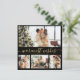Elegant Calligraphy Minimalist Black and Guld 4 Photo Collage "Waraste Önskemål", skript julkort för Helgdag. Den här snygga, imimalistiska, vimiska 4 (4) fotokortsmallen innehåller en söt fotokollage och säger "varmaste Önskemål". Texten är skriven på ett vackert handskrivet kursivt, snabbt bytt svan-typsnitt. På motsatt sida med hälsning-textmallen med lite hjärtskugga på vitt och ett vågrät fotomall. Söt hälsningskort för din familj och dina vänner under julens Julhelg.