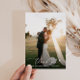 En modern trendig design med elegant vit bokstav och ett anpassat tackmeddelande på baksidan. Du kan fritt anpassa bilden och andra detaljer för att passa dina önskemål.