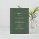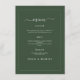 Elegant minimalistisk bröllopsinbjudan mörkgrön kl meny