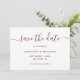 Elegant moderna bröllop spara datum-burgundkort med modernt skriptteckensnitt. Matchande objekt är tillgängliga.