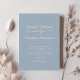 Fira din kärlek i stil med den minimalistiska dammblått och guld bröllopsinbjudan. Med en elegant design med en romantisk guld-hjärtaccent blandar den här inbjudan modern enkelhet med tidlös elegans. Den mjuka blå bakgrunden parad med delikat guld-typografi anger perfektens ton för ett romantiskt, klassiskt firande. Perfekt för par som uppskattar rent linjer, nyttigt sofistikerad och hjärtskärpa är inbjudan perfekt för modern, chicen och elegant bröllop.