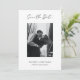 Modern bröllop spara datum-kort med en enkel och minimal design som "sparar datumet" i en elegant-skripttypografi ovanför lodräts foto. Nedan visas namn, datum och ort i ett klassiskt serif-teckensnitt. Baksidan har ett andra bild tillsammans med din webbplats. Paletten färg är svart och vit och kan ändras i designredigeringen av verktyg.