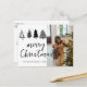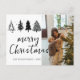 Elegant Minimalistiskt Julgran-vykort med enkla Julgran-bilder i svartvitt och omgivna av snöflingor. Anpassa kortets framsida genom att lägga till en anpassningsbar hälsning, din familj namn, året och ett foto. Lägg till ditt anpassningsbar-meddelande och adress på kortets baksida eller lämna det tomt om du vill skriva ditt eget.