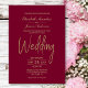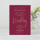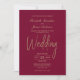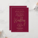 En elegant-minimalistisk bröllopsinbjudan till magenta med guld text.